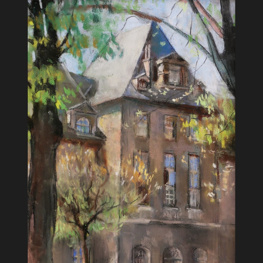 Marthe PASTEUR, Place ensoleillée (à Paris ?), pastel