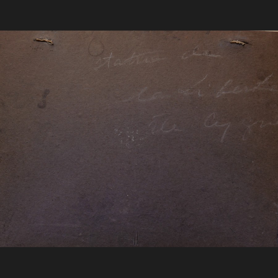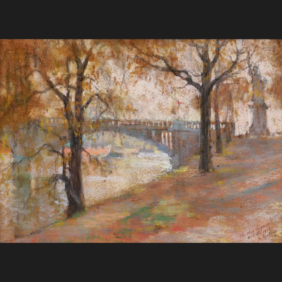 Situé, daté et signé en bas à droite Ile des cygnes / octobre 1918 / m. Pasteur, situé au dos du carton de fond statue de la Liberté / île Cygnes