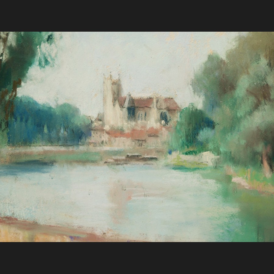 Marthe PASTEUR, Vue de la Cathédrale de Meaux, pastel