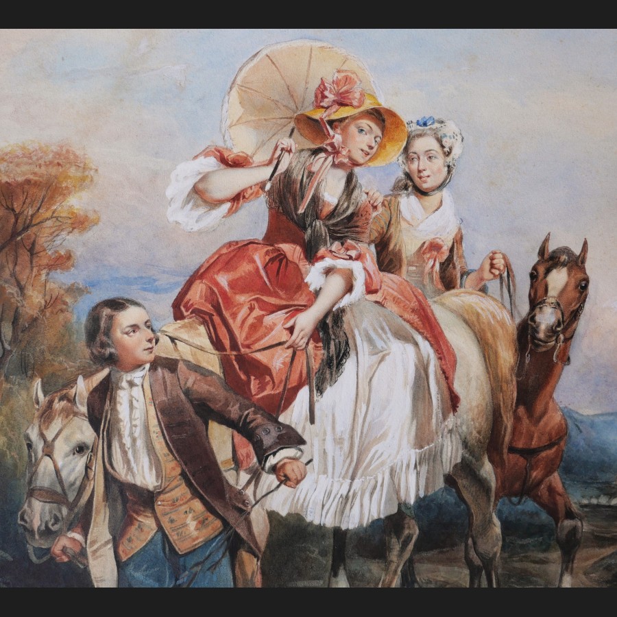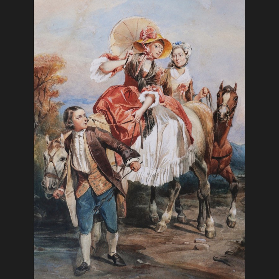 École FRANÇAISE en 1865, d'après Camille ROQUEPLAN, Le passage du gué, aquarelle