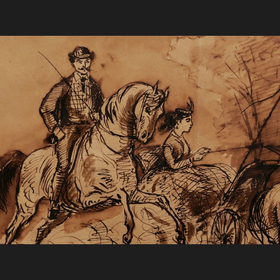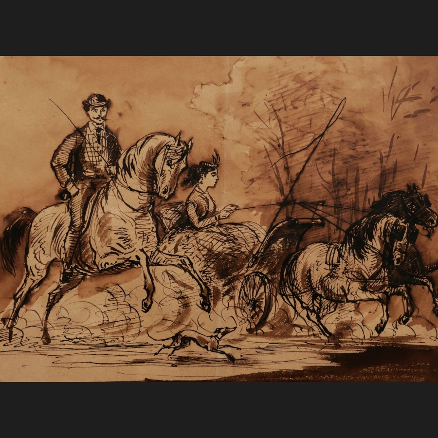 Attribué à Constantin GUYS, Cavalier et femme en calèche, dessin