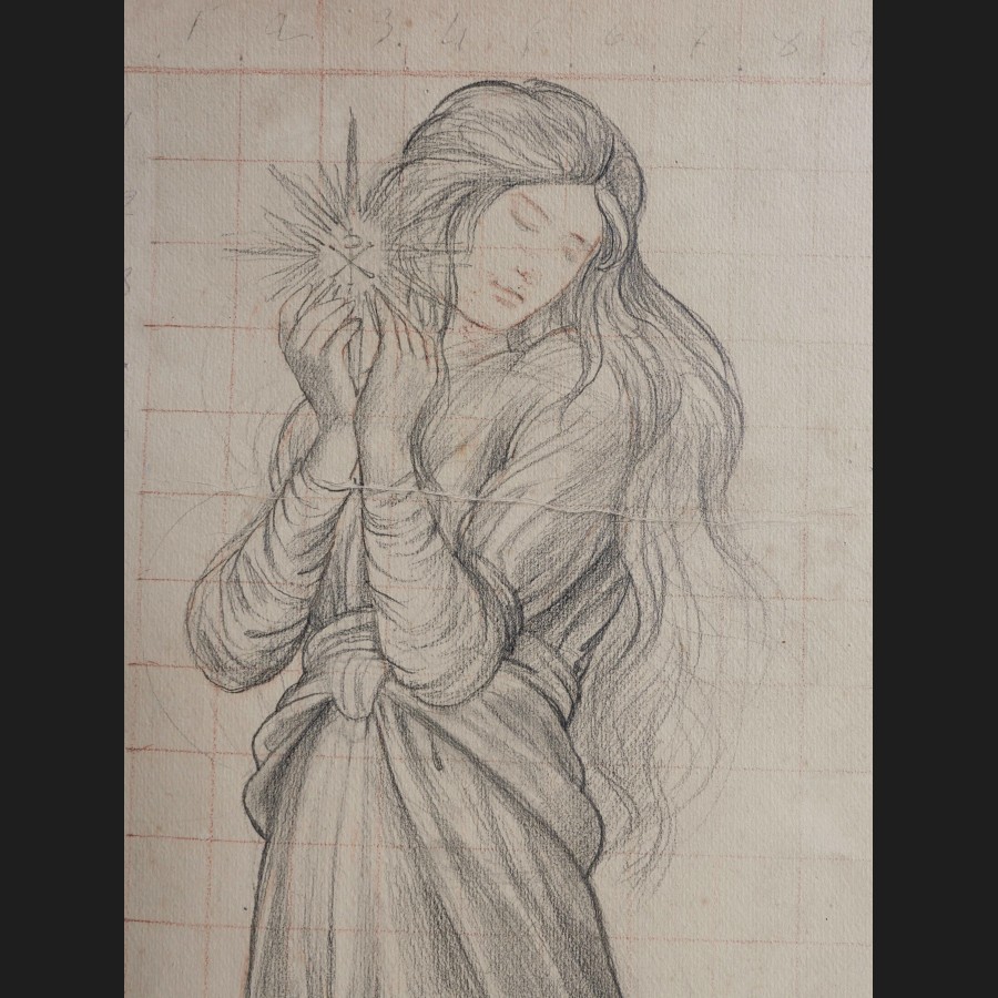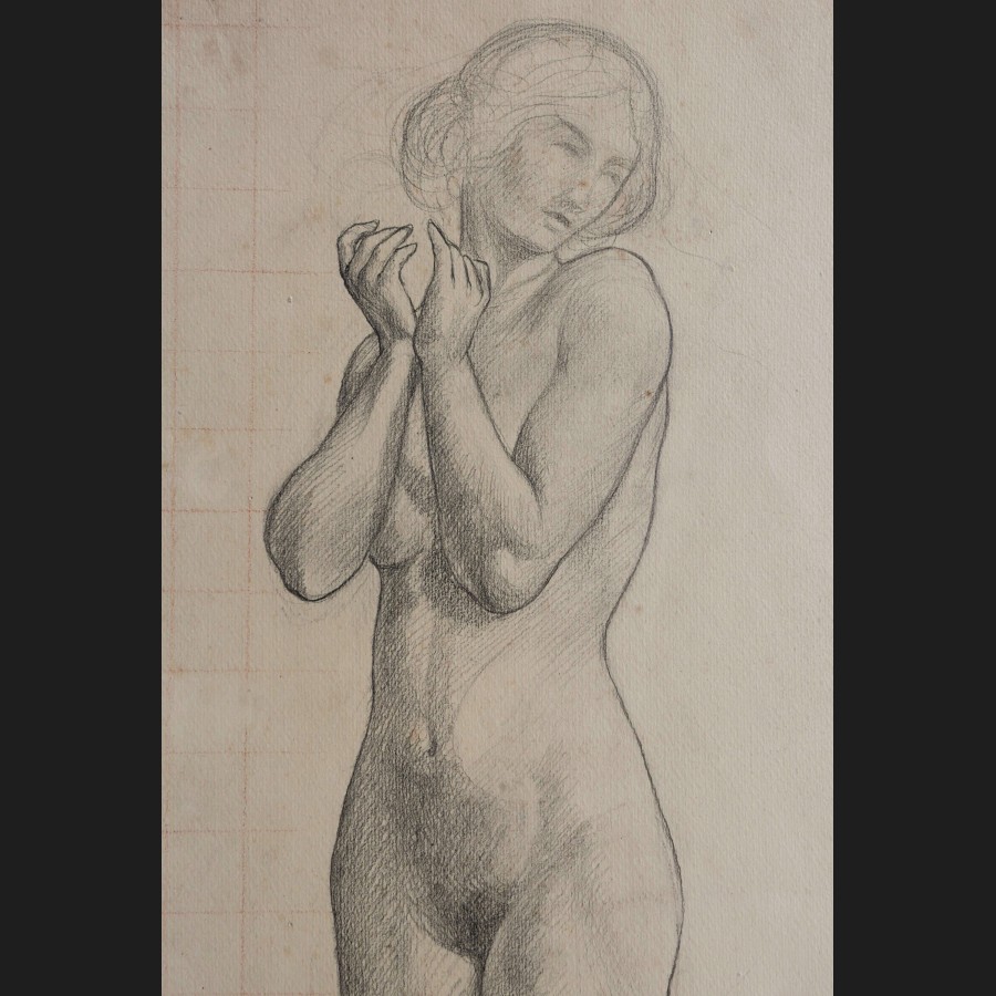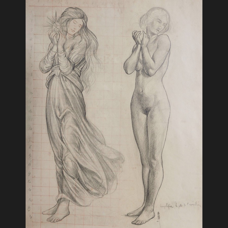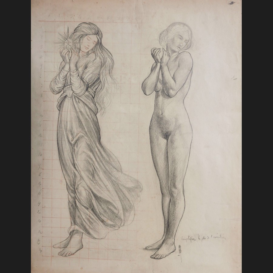 École FRANÇAISE fin XIXème siècle, Étude de femme drapée et de femme nue tenant un chrisme, dessin