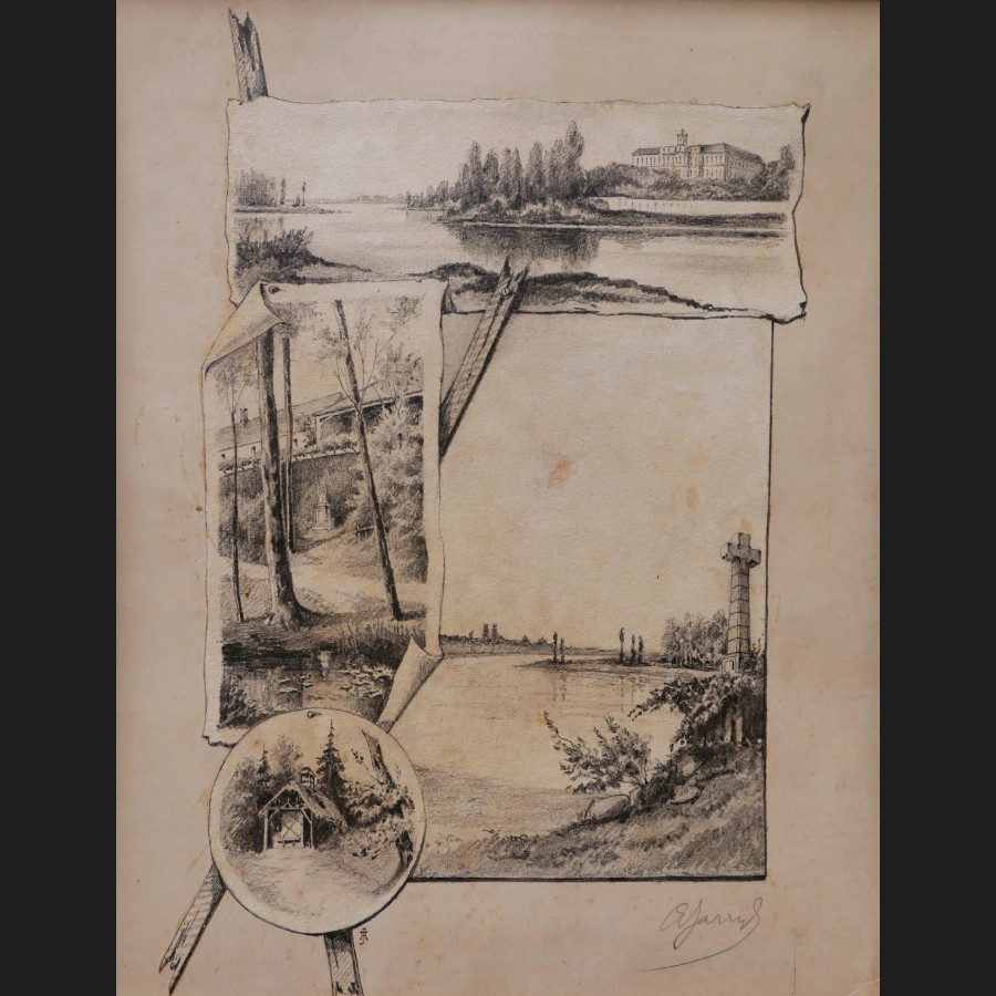 Attribué à Alfred JARRY, Paysages lacustres, dessin