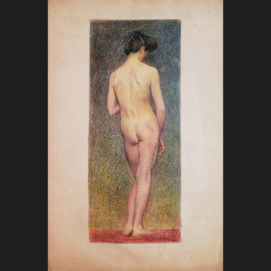 École FRANÇAISE ou ITALIENNE, début XXème siècle, Nu féminin debout, de dos, dessin