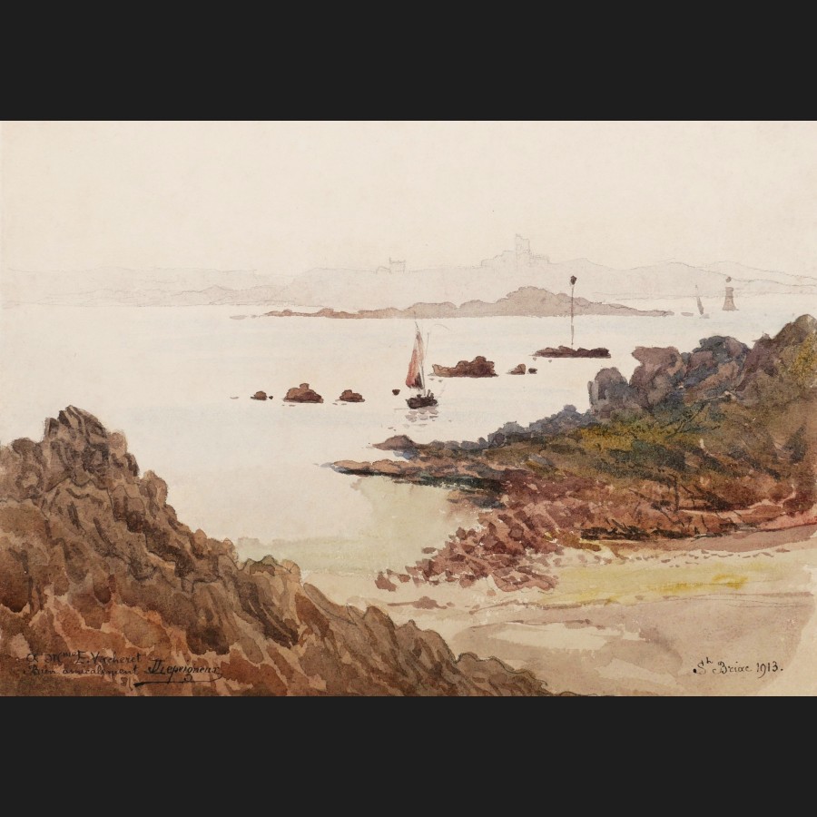 Dédicacé et signé en bas à gauche a mme E. Vacheret / Bien amicalement / J. Lepeigneux, situé et daté en bas à droite St Briac 1913