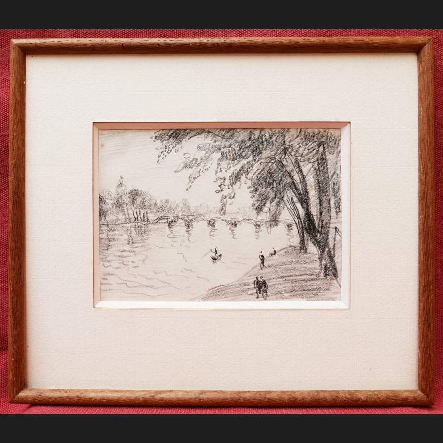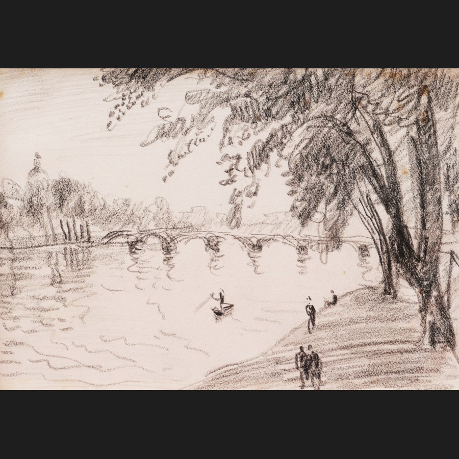 Attribué à Alfred SISLEY, Les quais à Paris, dessin