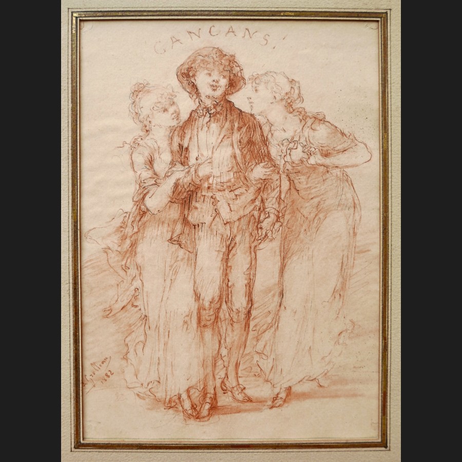 Signé et daté en bas à gauche A. Grolleau / 1882, titré en haut au centre CANCANS !