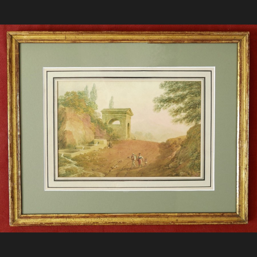 École FRANÇAISE fin XVIIIème – début XIXème siècle, Paysage italien animé, aquarelle