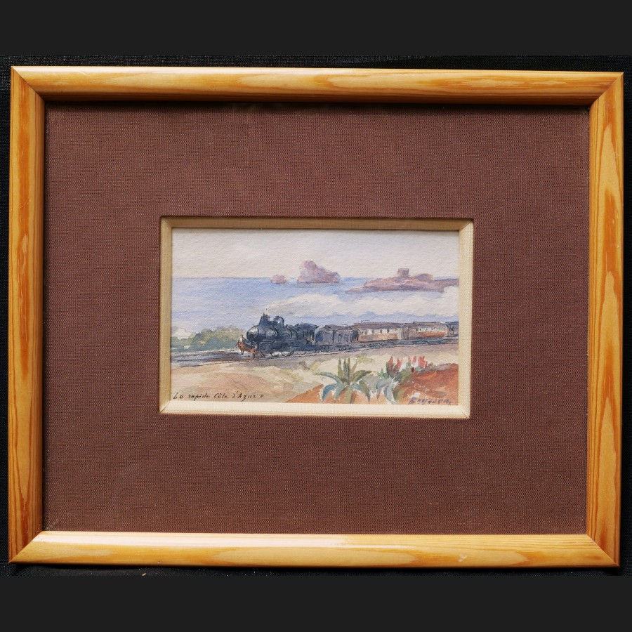 Louis BEYSSON, Train sur la Côte d'Azur, aquarelle