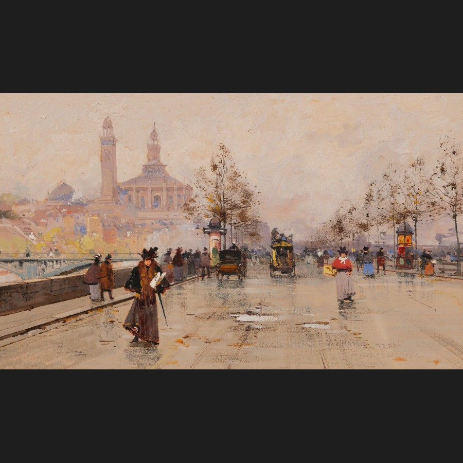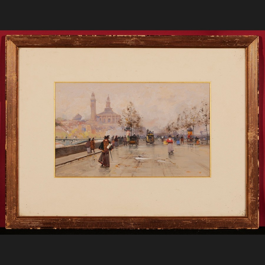 Eugène GALIEN-LALOUE (Paris, 1854 – Chérence, 1941) Vue animée de Paris avec le Palais du Trocadéro, gouache