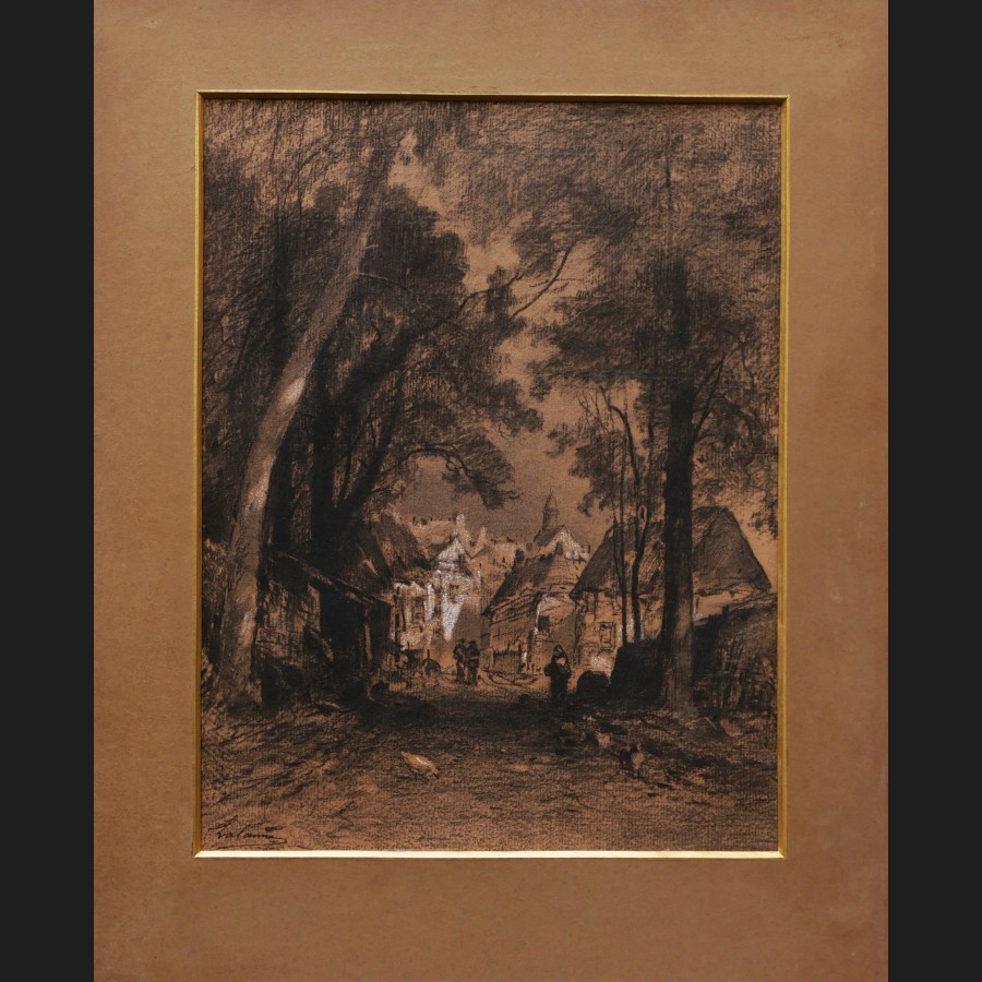 Signé en bas à gauche Lalanne, étiquette au revers du montage 17. Entrée de village, près Concarneau.