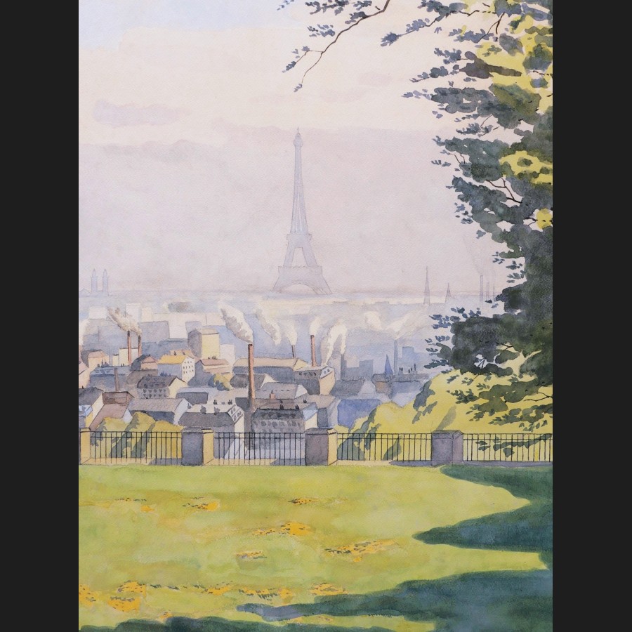 Henri HEUN, Vue sur Paris avec la Tour Eiffel, aquarelle