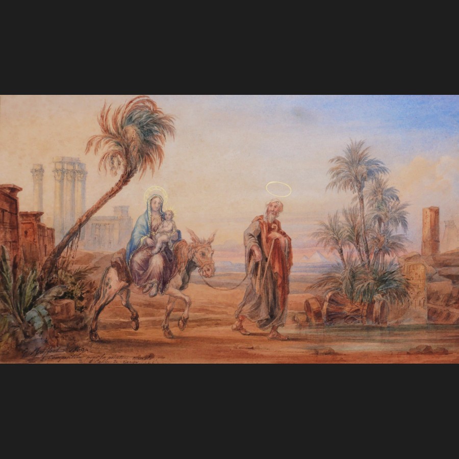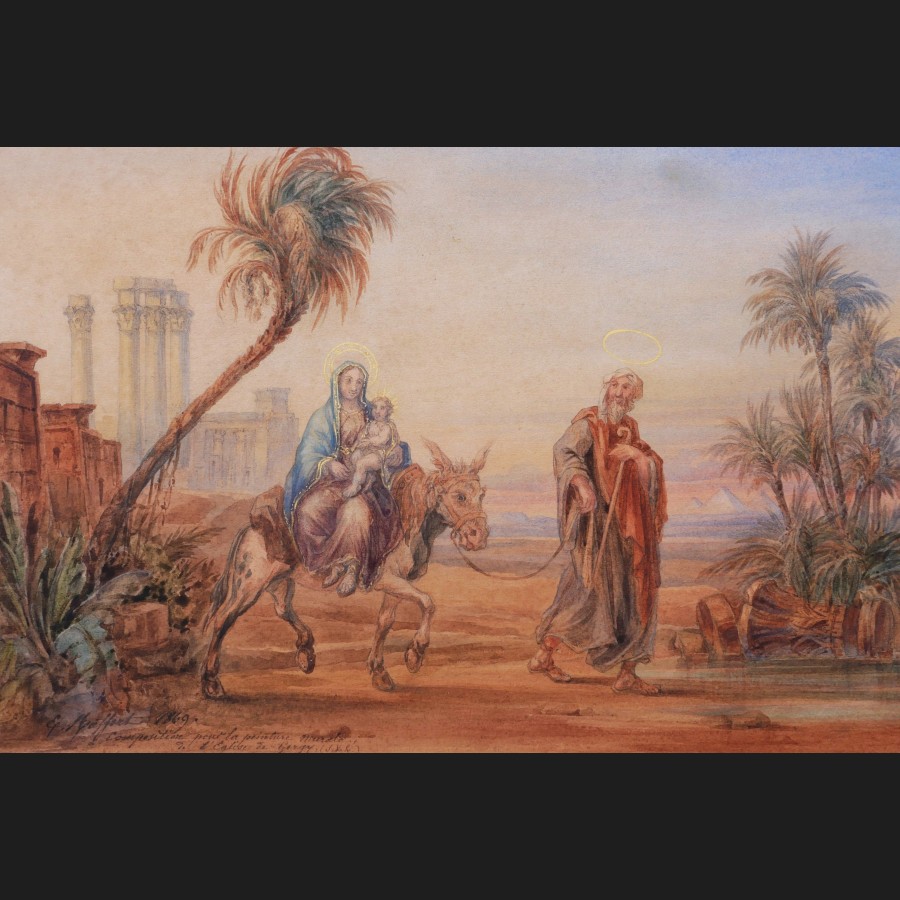 Étienne RAFFORT, La Fuite en Égypte, aquarelle