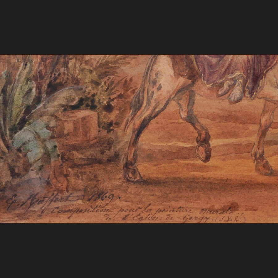 Signé, daté et titré en bas à gauche E. Raffort 1869 / Composition pour la peinture murale de l'Eglise de Gergy (S & L)