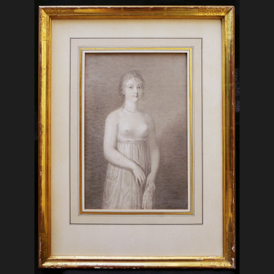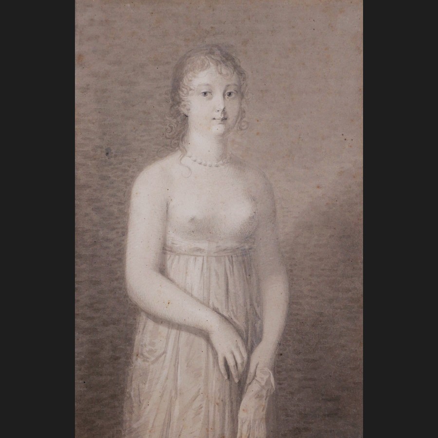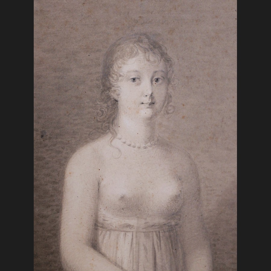 École FRANÇAISE début XIXème siècle, Femme à la poitrine dénudée tenant un gant, dessin