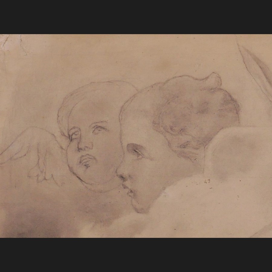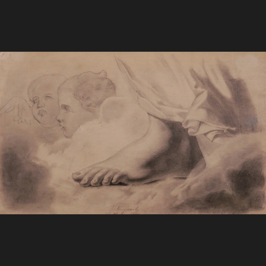 Jacques Joseph MAQUART, Étude de pied et de deux têtes d'anges, dessin
