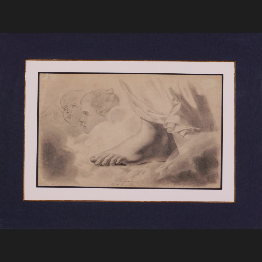Étude de pied et de deux têtes d'anges