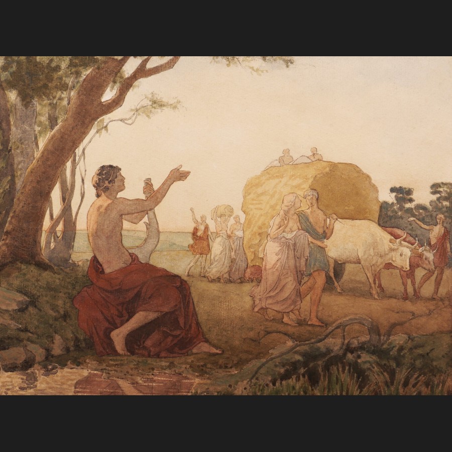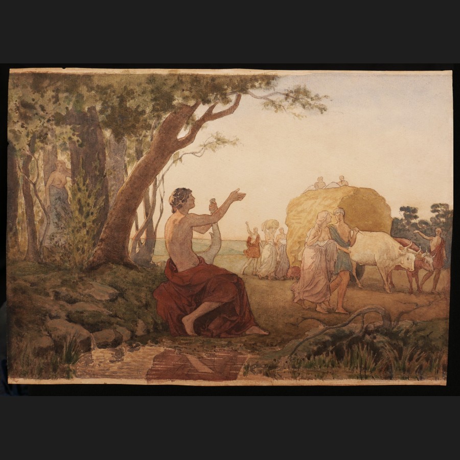 École FRANÇAISE de la fin du XIXème siècle, Scène pastorale antique, aquarelle