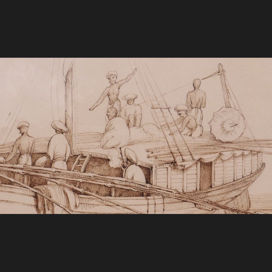 Captain John LUARD, Budgerow on the Ganges, dessin