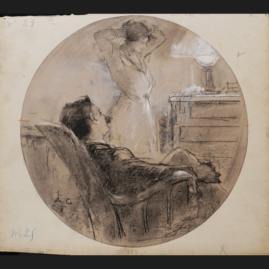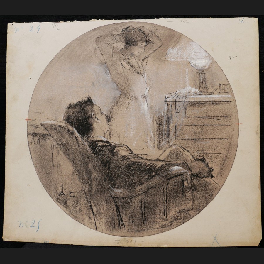 Antoine CALBET, Couple dans l'intimité, dessin