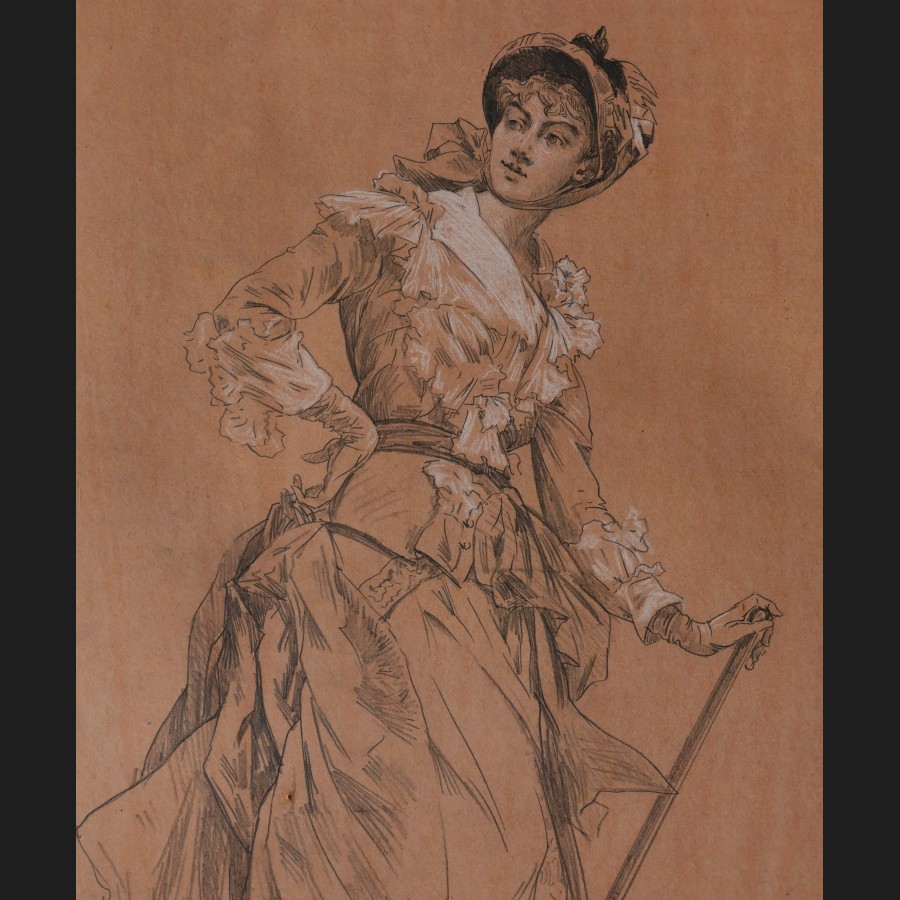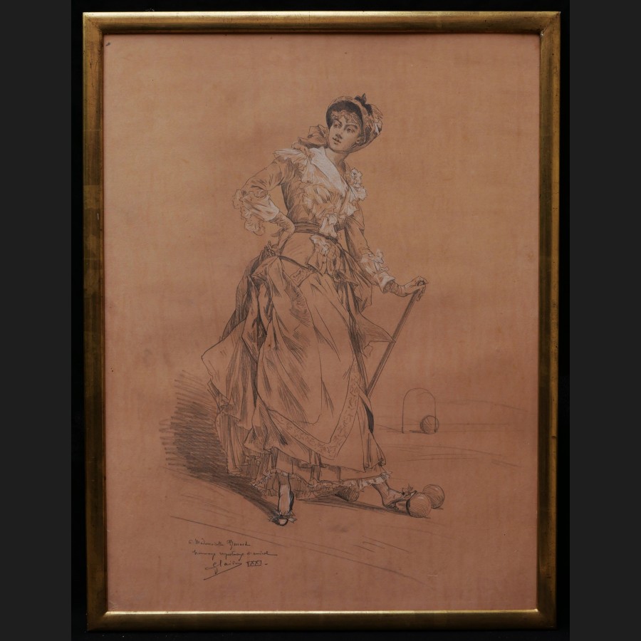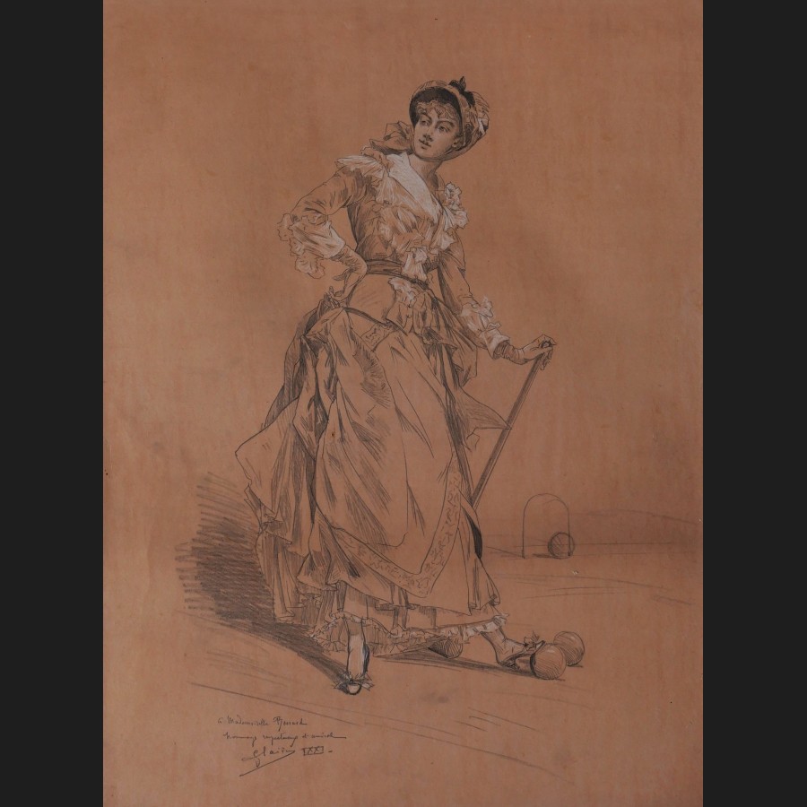 Georges Jules Victor CLAIRIN, Mademoiselle Renard en joueuse de croquet, dessin