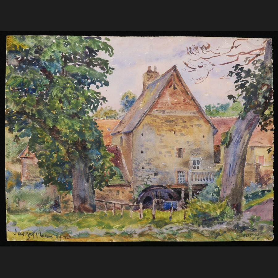 André Alfred DEBERGUE, Le Moulin Neuf à Juvigny-sur-Andaine, aquarelle