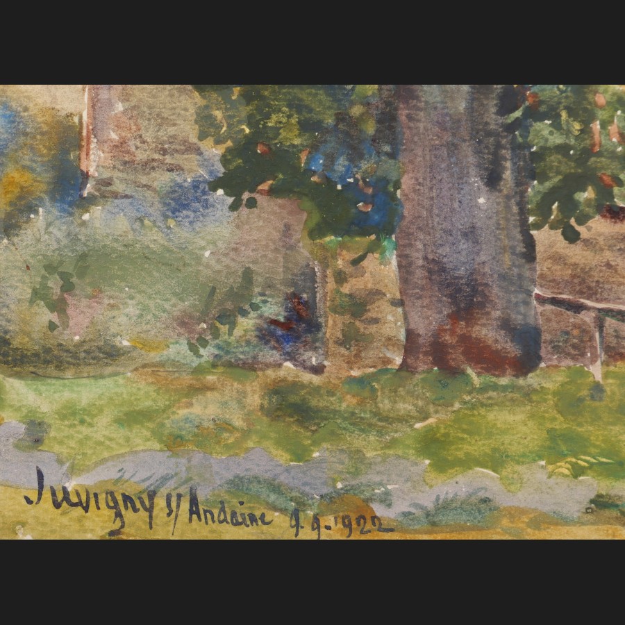Situé et daté en bas à gauche Juvigny s/Andaine 9-9-1922, signé en bas à droite ADebergue