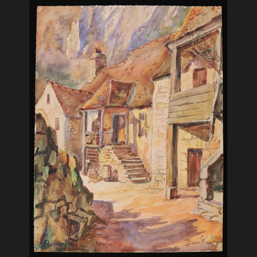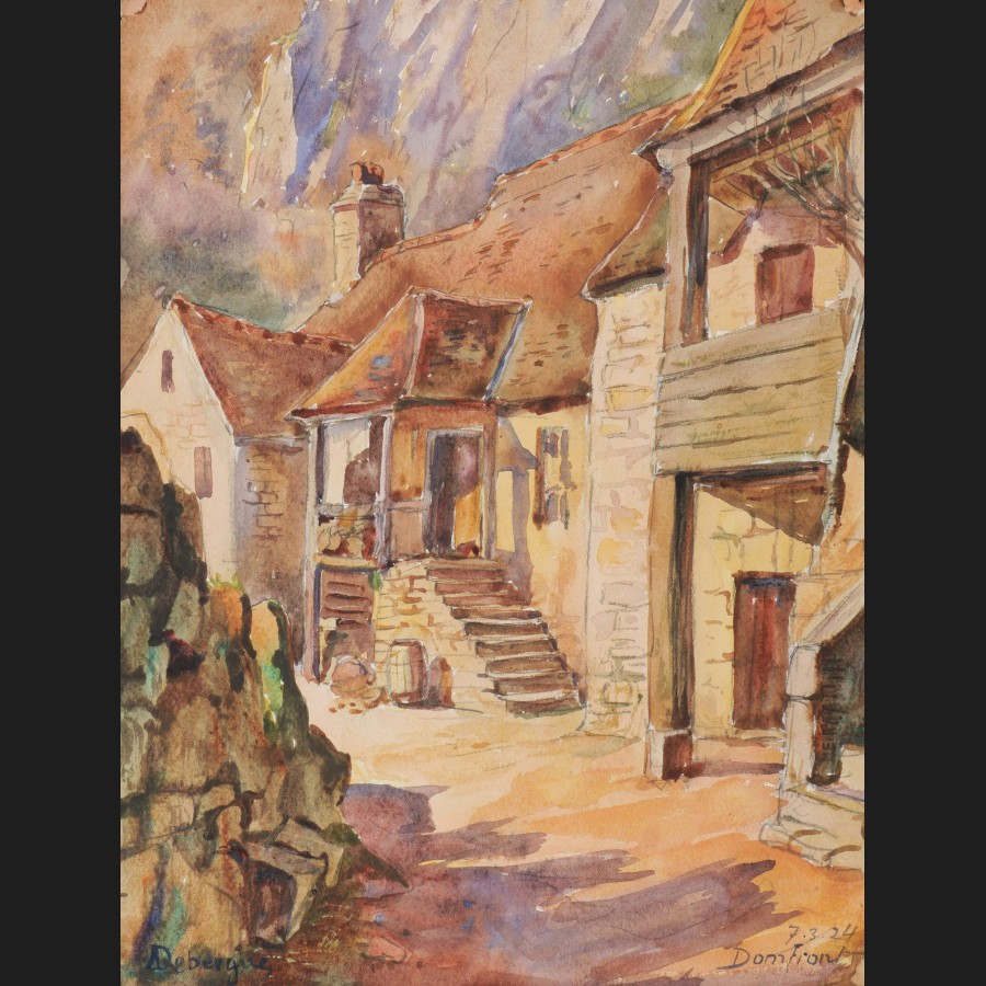 André Alfred DEBERGUE, Maisons à Domfront dans l'Orne, aquarelle