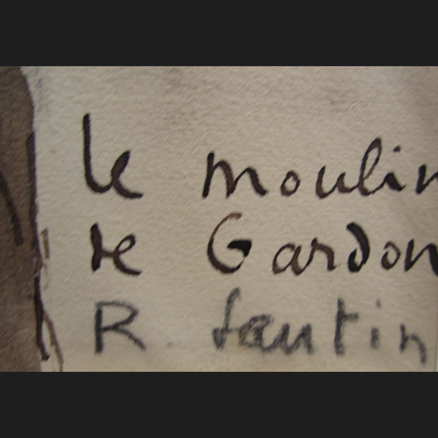 Situé et signé en bas à droite Le Moulin de Gardon / R. Sautin