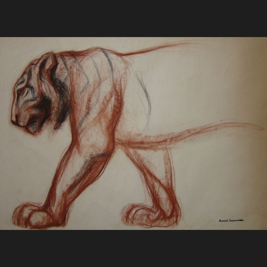 Digne héritier d'un Jouve ou d'un Guyot, ses lionnes aussi hiératiques que dangereuses , ses buffles altiers, n'ont pas à rougir de la comparaison avec ses ainés, et c'est un bonheur que de découvrir toute cette faune sauvage qu'il a su dompter par la seule grâce de son crayon et de son fusain.
