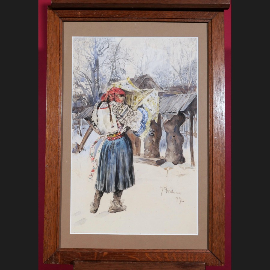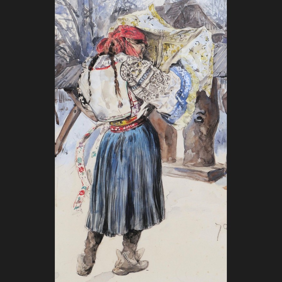 Jan DĚDINA, Paysanne en costume, aquarelle