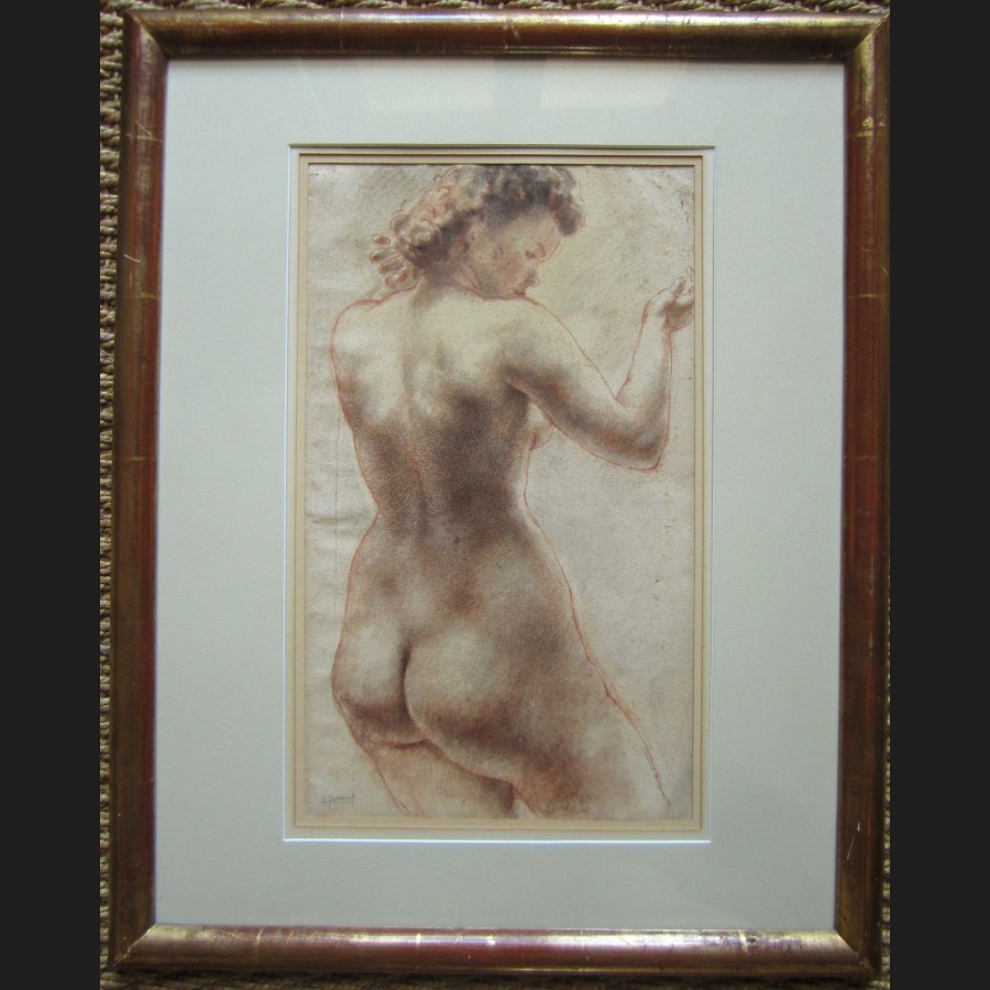 Alfred Auguste JANNIOT (Paris, 1889 – Neuilly-sur-Seine, 1969)Nu fémininCrayon et sanguine sur papierSigné en bas à gauche A Janniot34 x 20 cm
