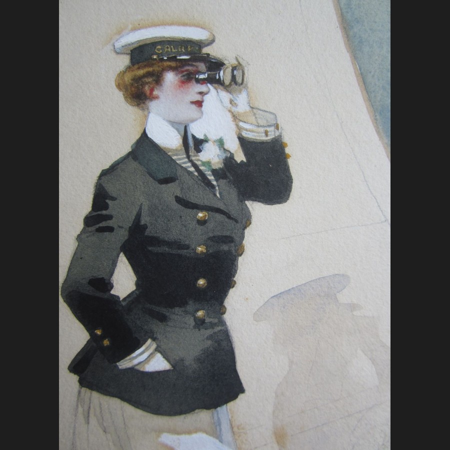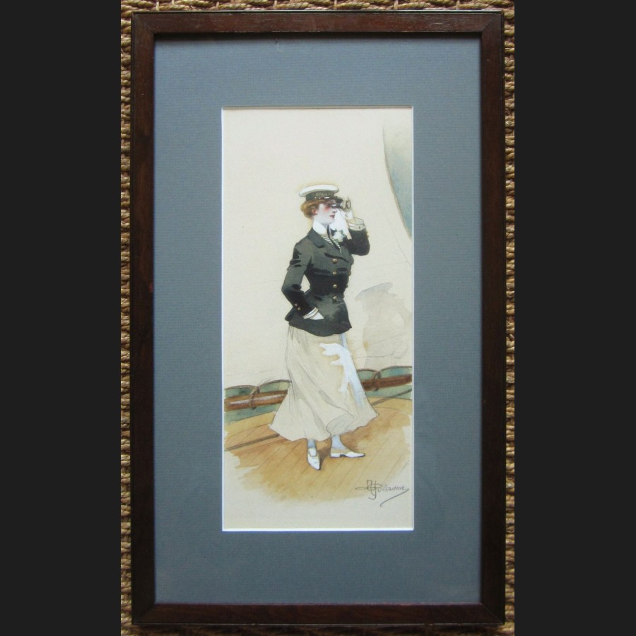Albert Paul GUILLAUME, Femme regardant aux jumelles sur le pont d'un bateau, dessin