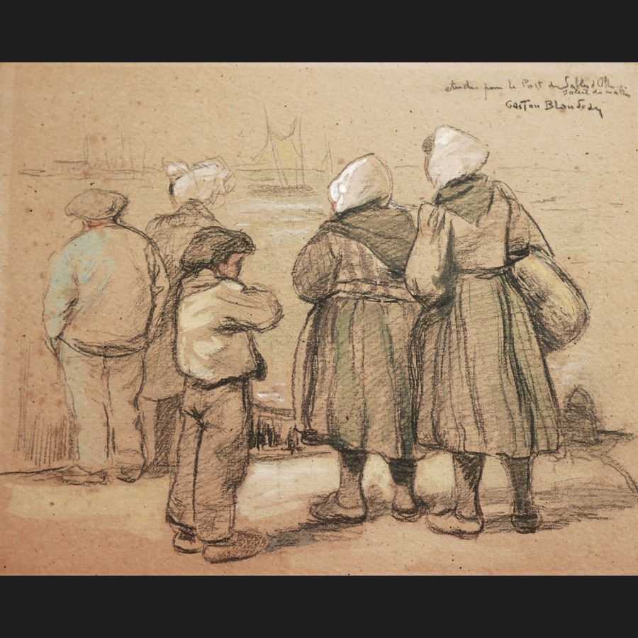 Titré et signé en haut à droite étude pour le port des Sables d'Olonne / Soleil du matin / Gaston Blondeau
