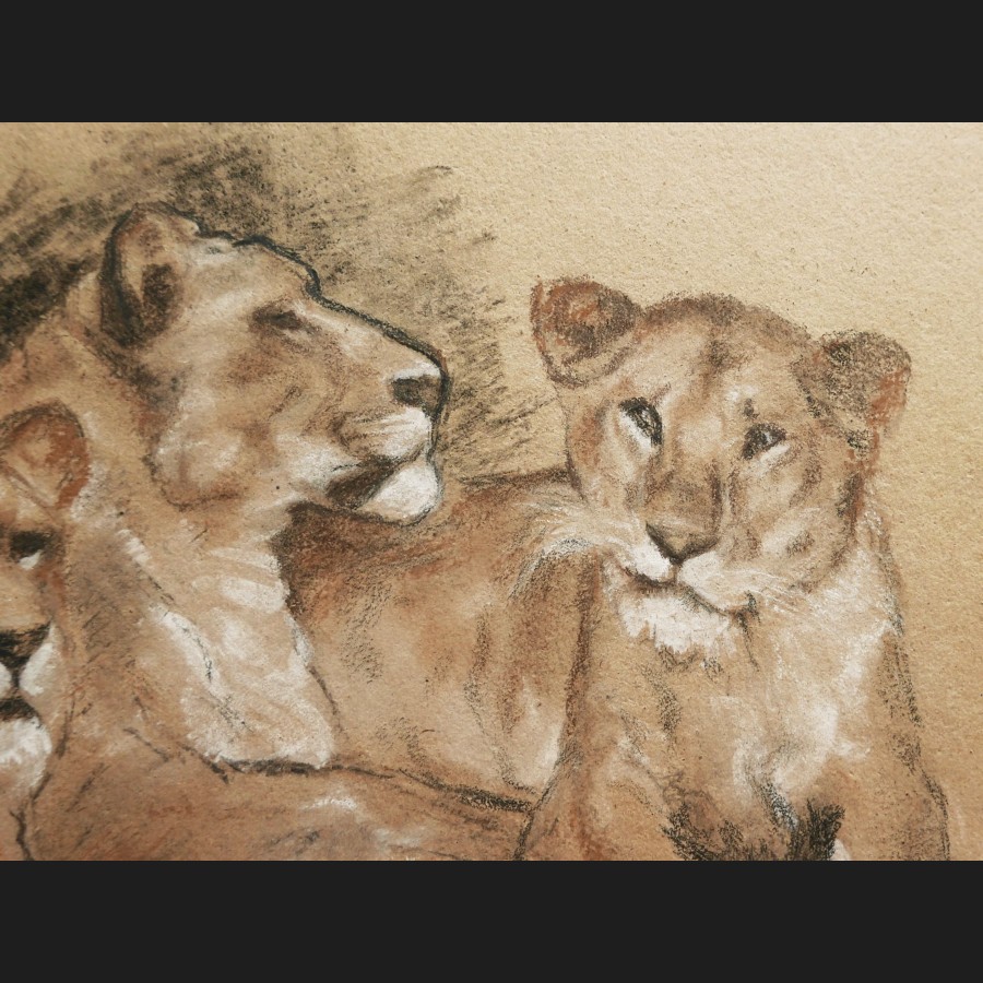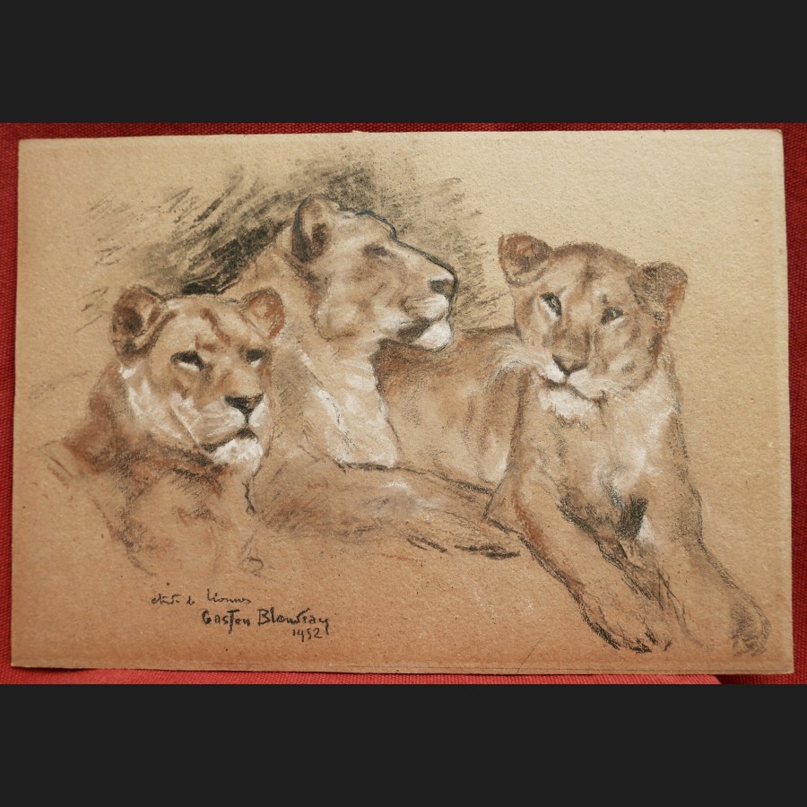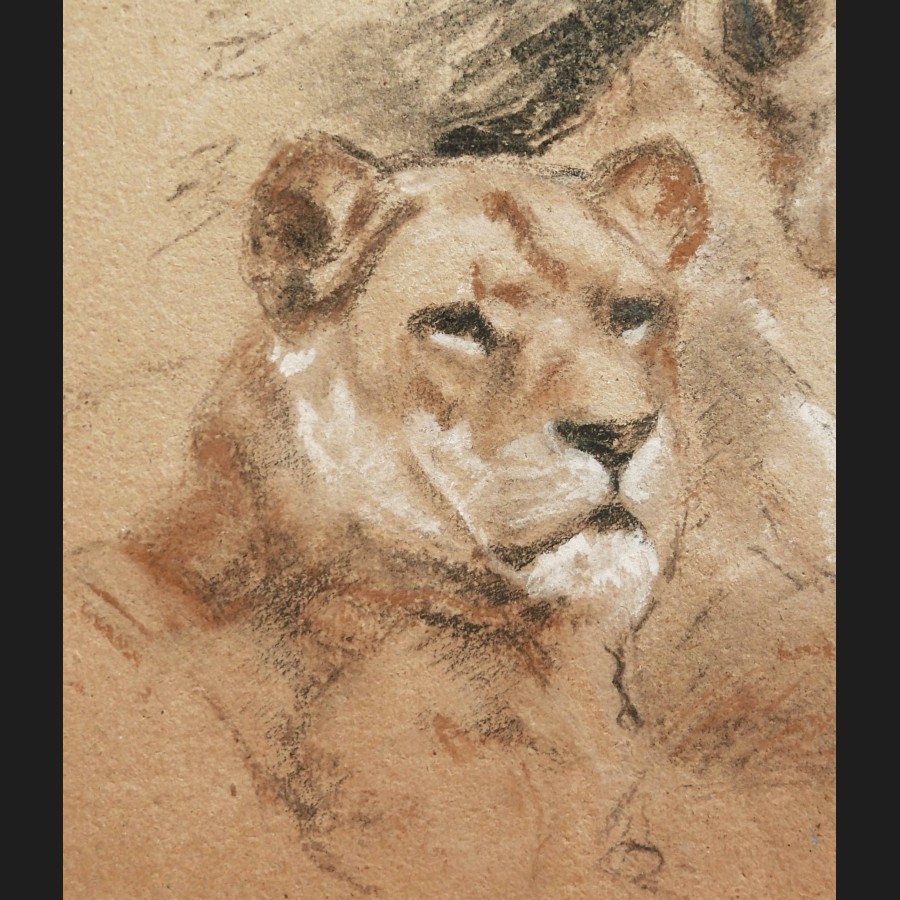 Gaston BLONDEAU (1886-1979)LionnesFusain et pastel sur papierTitré, signé et daté en bas à gauche étude de lionnes / Gaston Blondeau / 194224 x 35 cm
