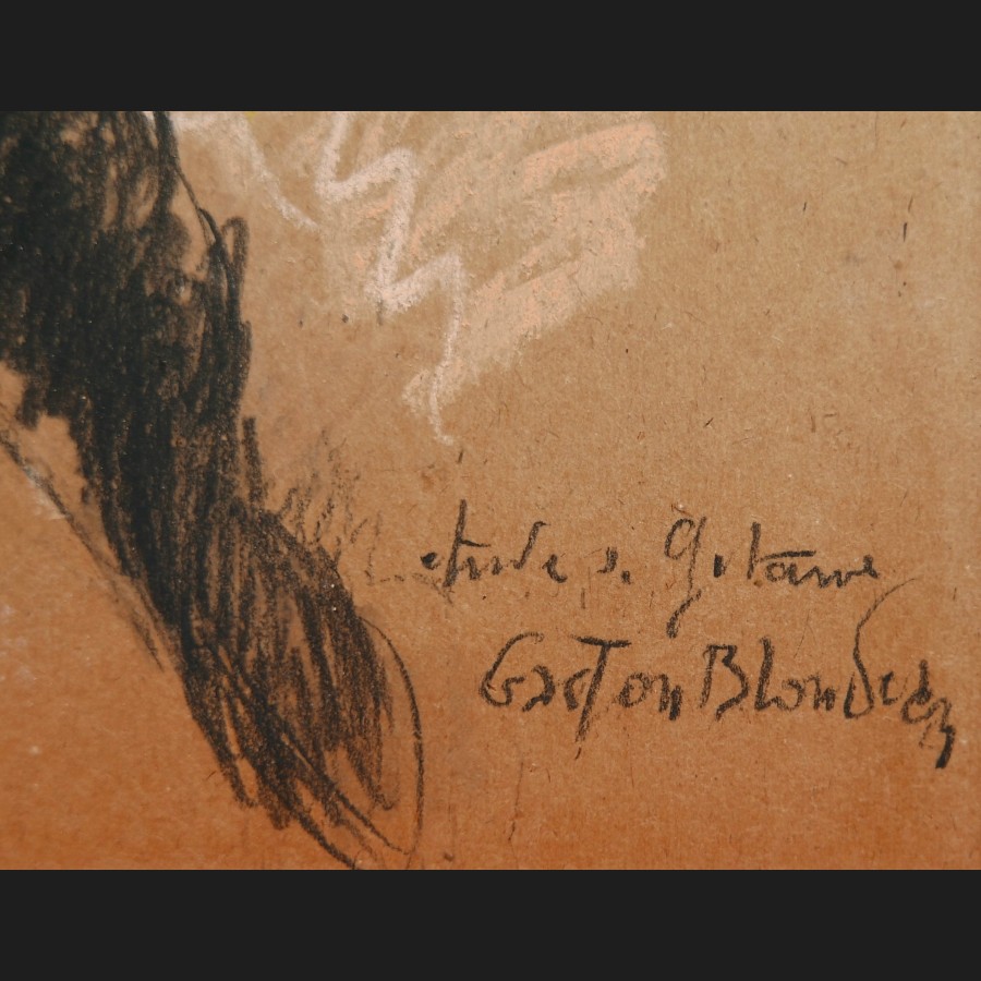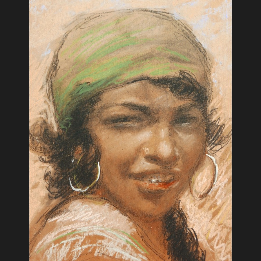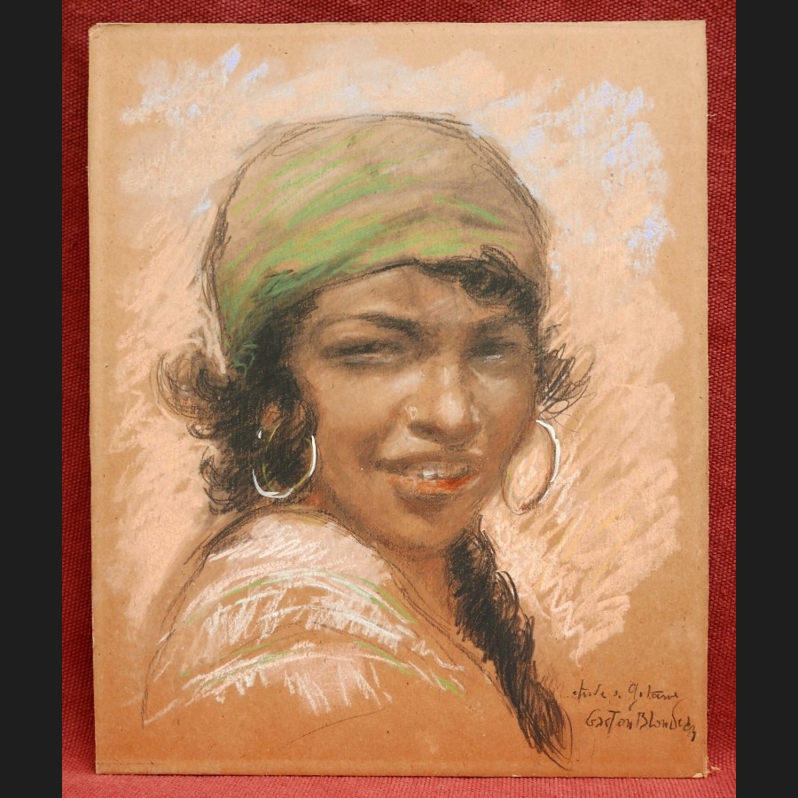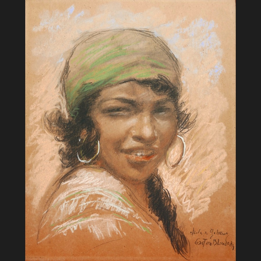 Gaston BLONDEAU (1886-1979)Portrait de gitaneFusain et pastel sur papierTitré et signé en bas à droite étude de gitane / Gaston Blondeau27 x 22 cm