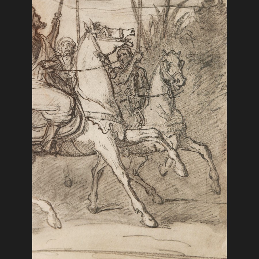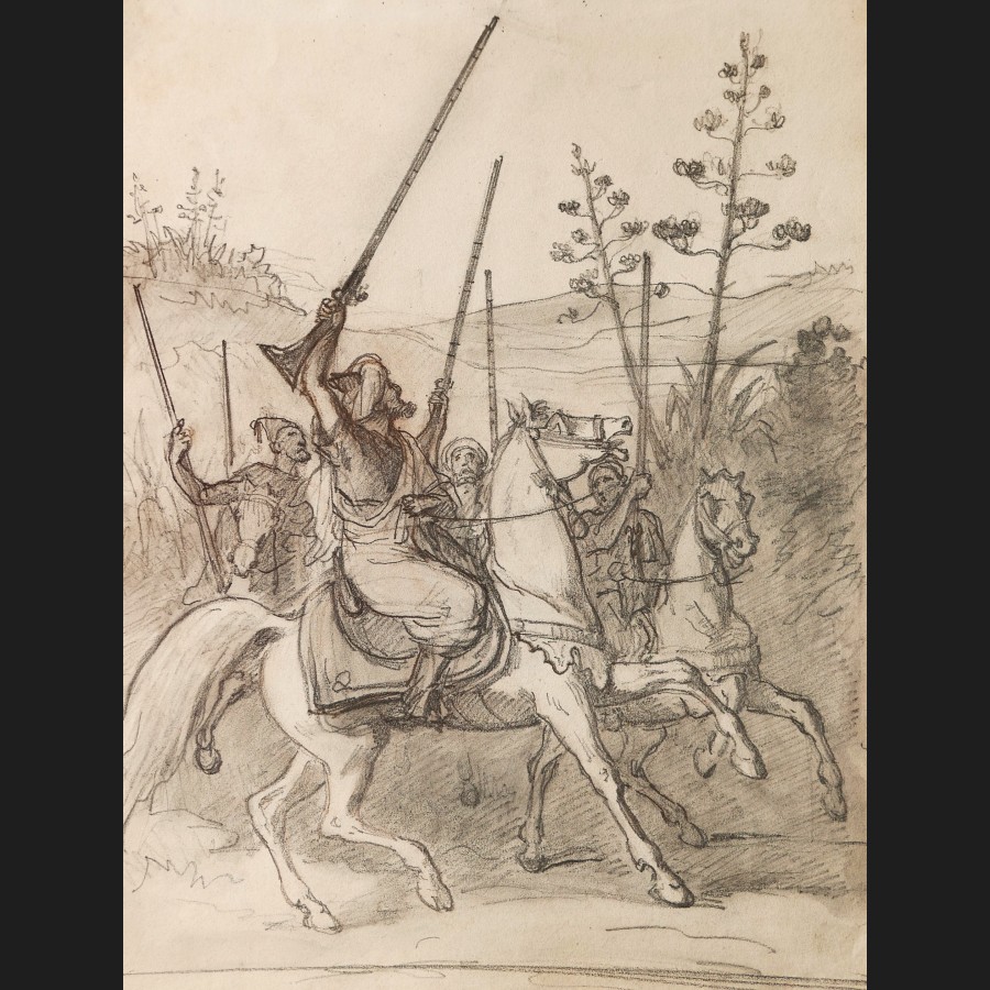 Attribué à Alphonse Clément André BRONDY, dit Matteo BRONDY (Paris, 1866 – Meknès, 1944)Fantasia de cavaliers arabesCrayon sur papier27 x 20 cm