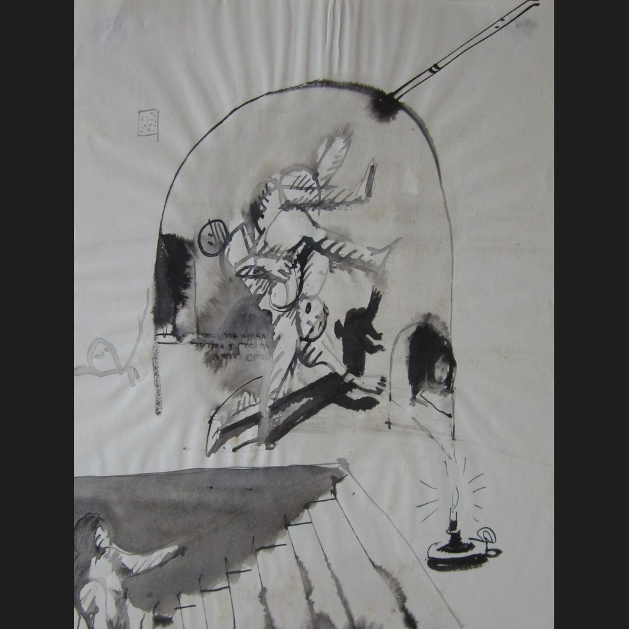 Francois JOUSSELIN, Personnages et escalier, dessin