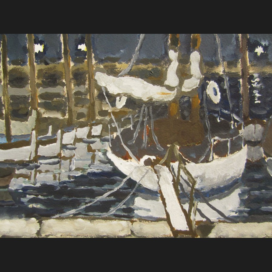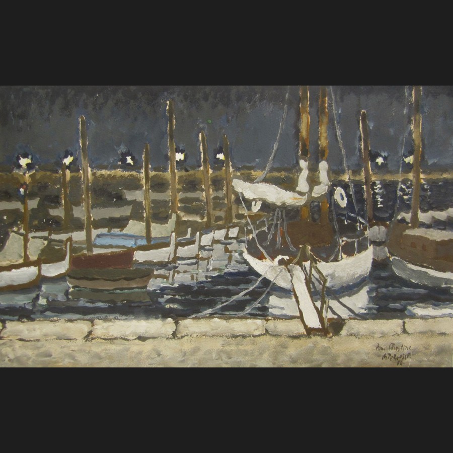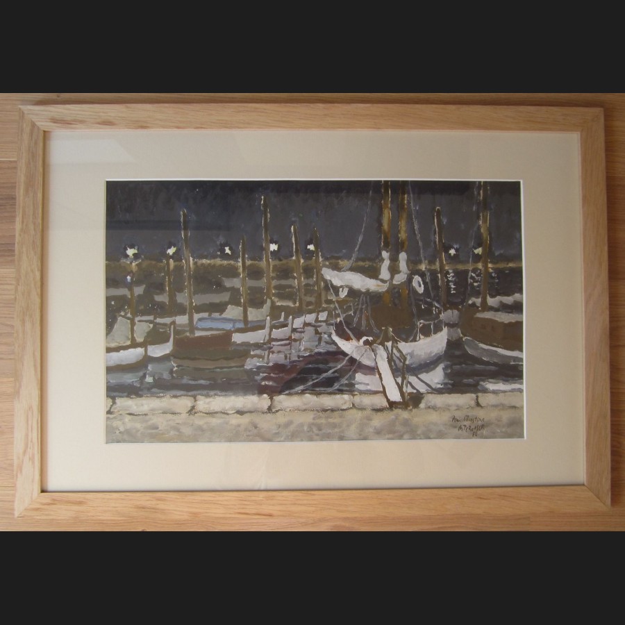 Michel TERRASSE, Le port d'Antibes de nuit, gouache