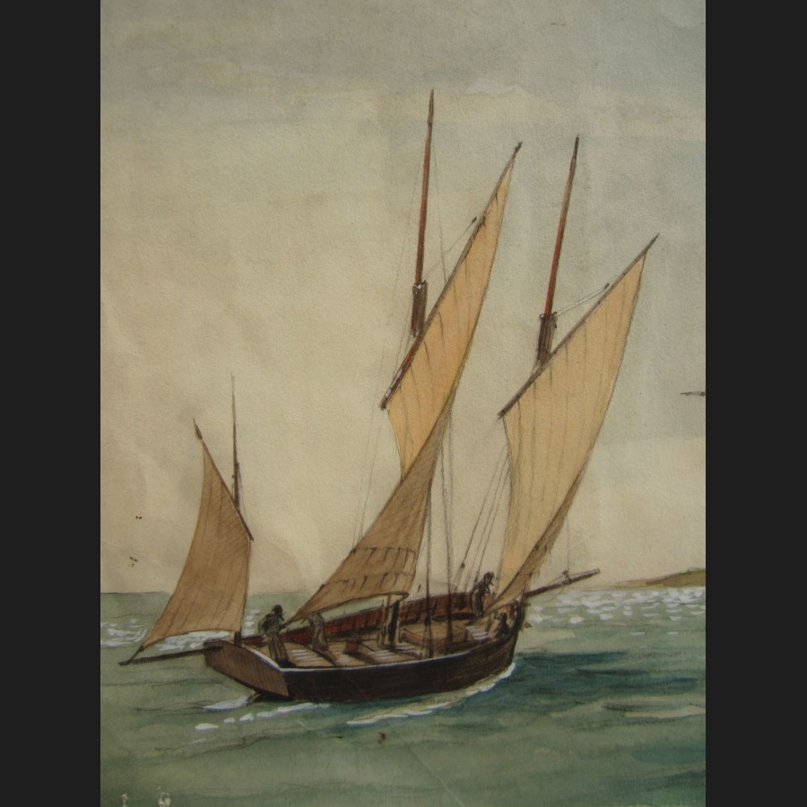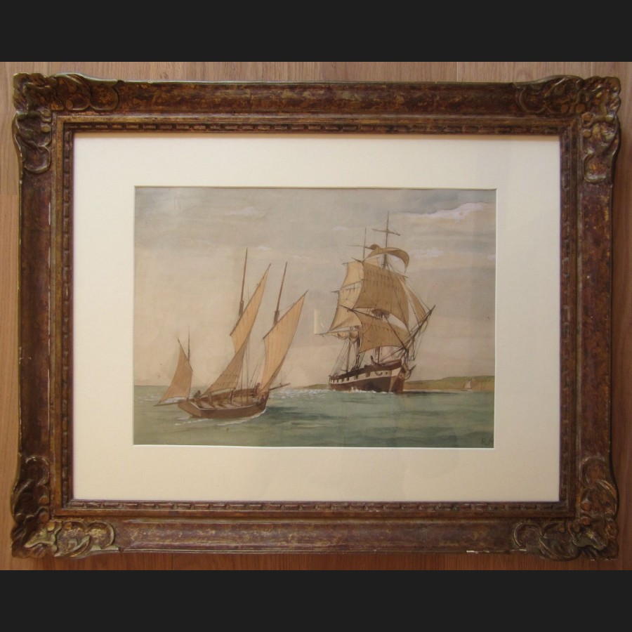 Ecole FRANCAISE de la fin du XIXeme siecle, Trois-mats et barque, dessin