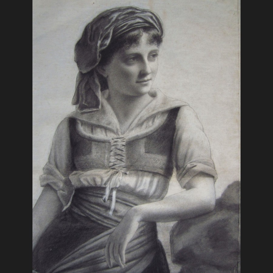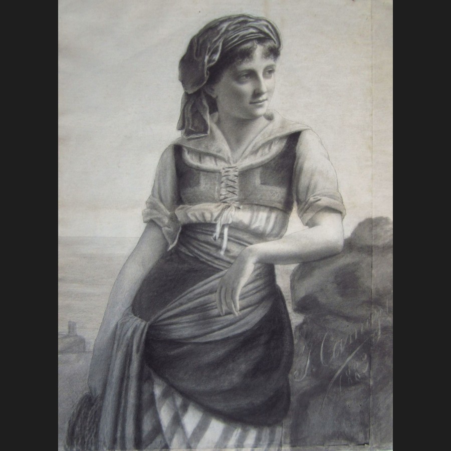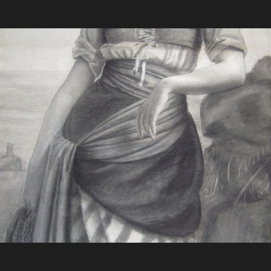 J. CAMUZET, Femme au bord de la mer, dessin