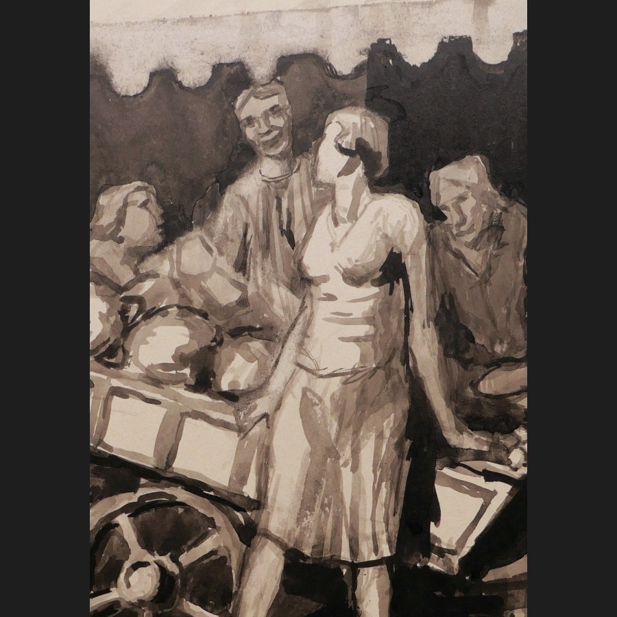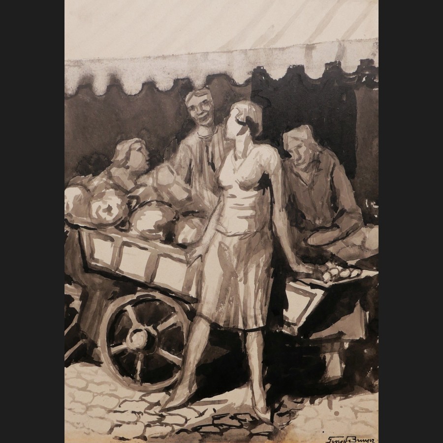 Georges BRUYER (Paris, 1883 – Paris, 1962)Scène de marché à ParisLavis d'ence bruneSigné en bas à droite Georges Bruyer30 x 22 cm