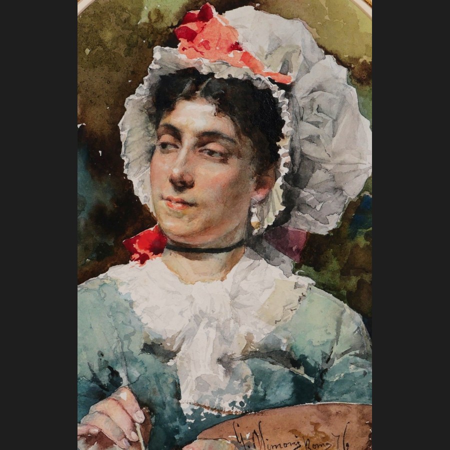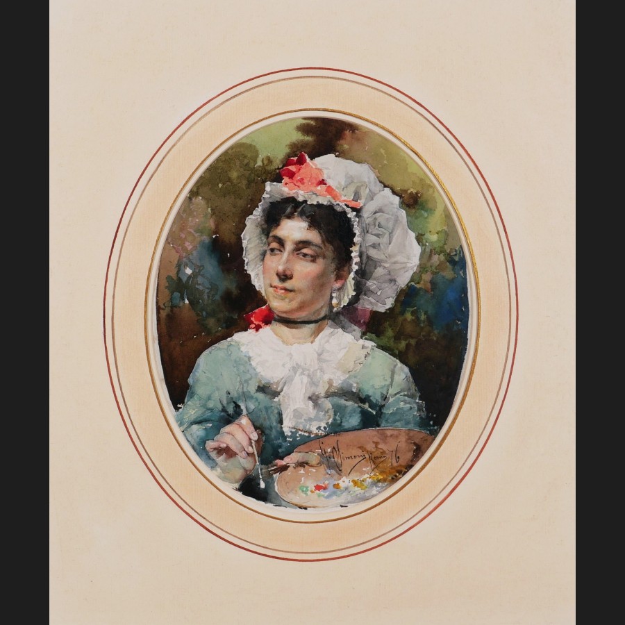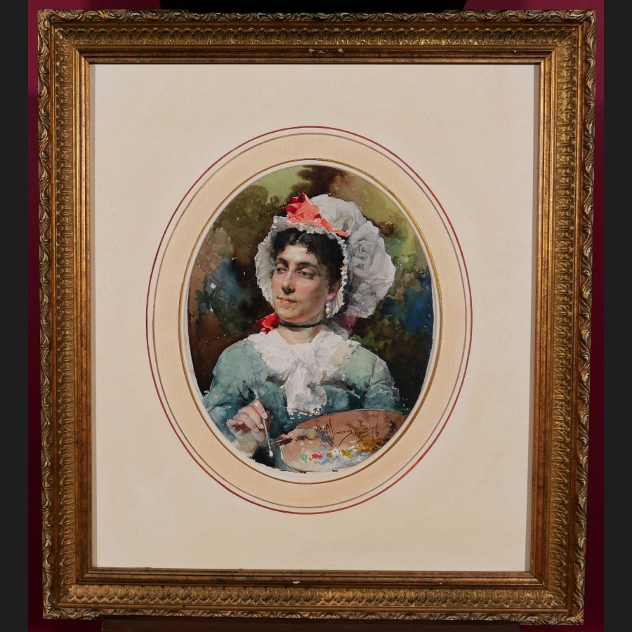 Gustavo SIMONI, Portrait d'une femme peintre, aquarelle