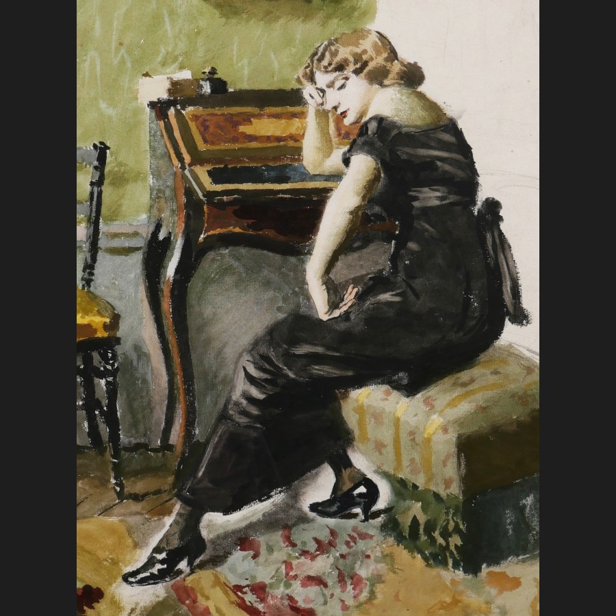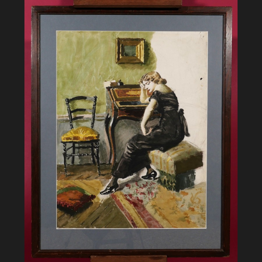 École FRANÇAISE circa 1880Femme pensive dans un intérieurAquarelle sur papier61 x 46 cm