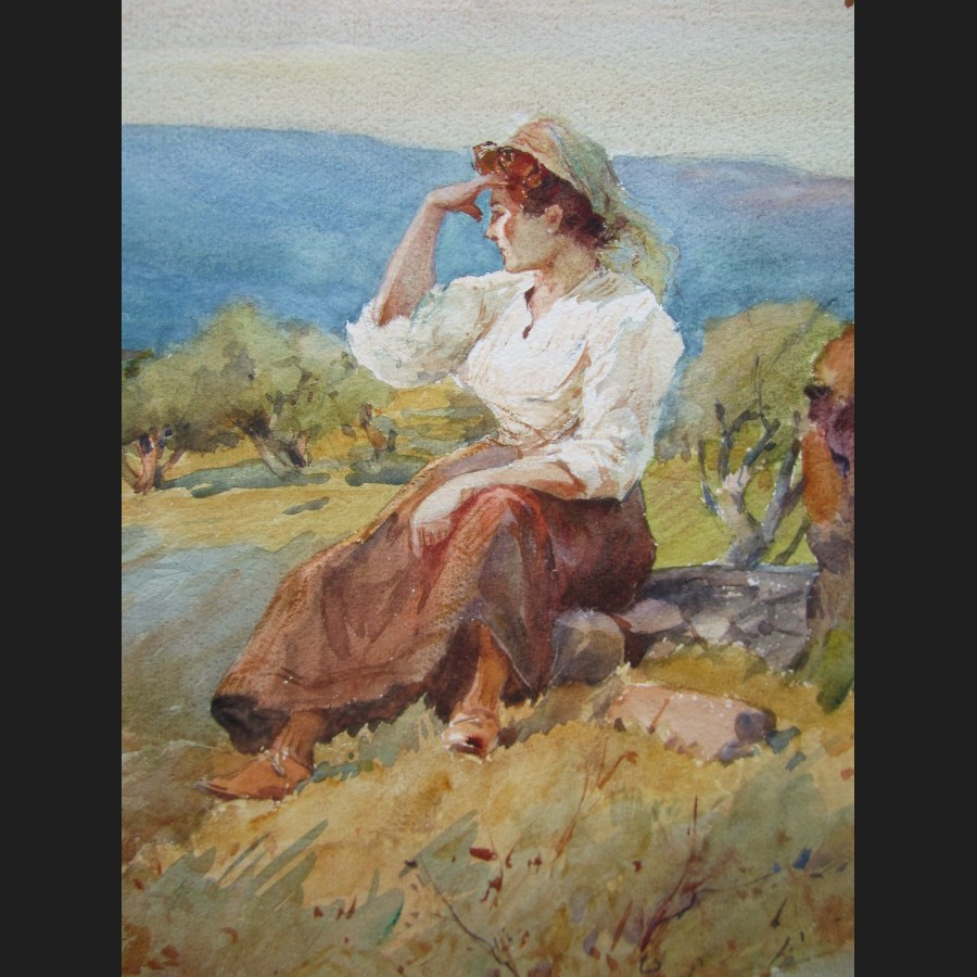 Rene LEVERD, Paysanne aux alentours d'Avignon, aquarelle