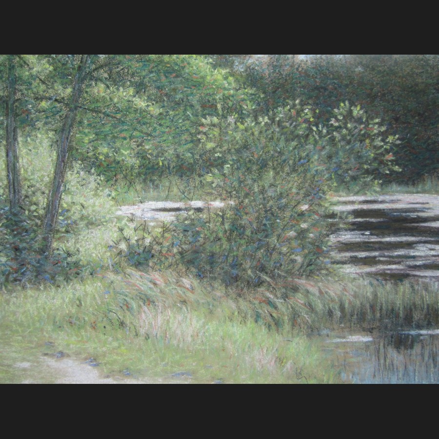 Adolphe-Alphonse GERY-BICHARD, Paysage de campagne au bord d'un etang, pastel