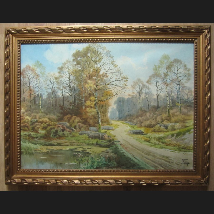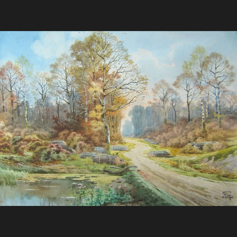 Hippolyte Jean Adam GIDE (1852-1921)Paysages d'automne en forêtPaires d'aquarelles sur papierSignées H Gide56 x 75,5 cm