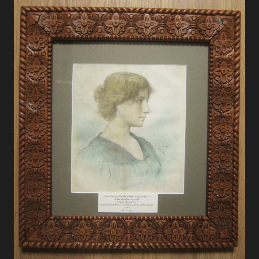Jean Alexandre CORABOEUF, Jeune Romaine de profil, dessin