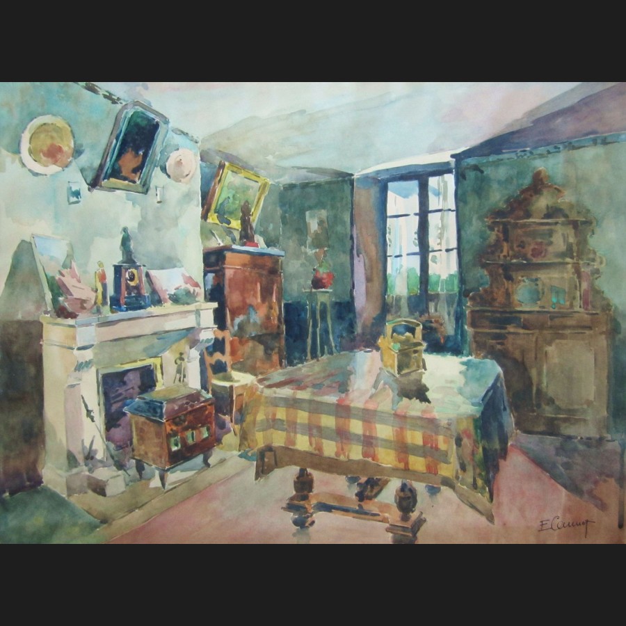 Édouard CANNET (1896-1964)Intérieur rustiqueAquarelleSigné en bas à droite E. Cannet45 x 60 cm
