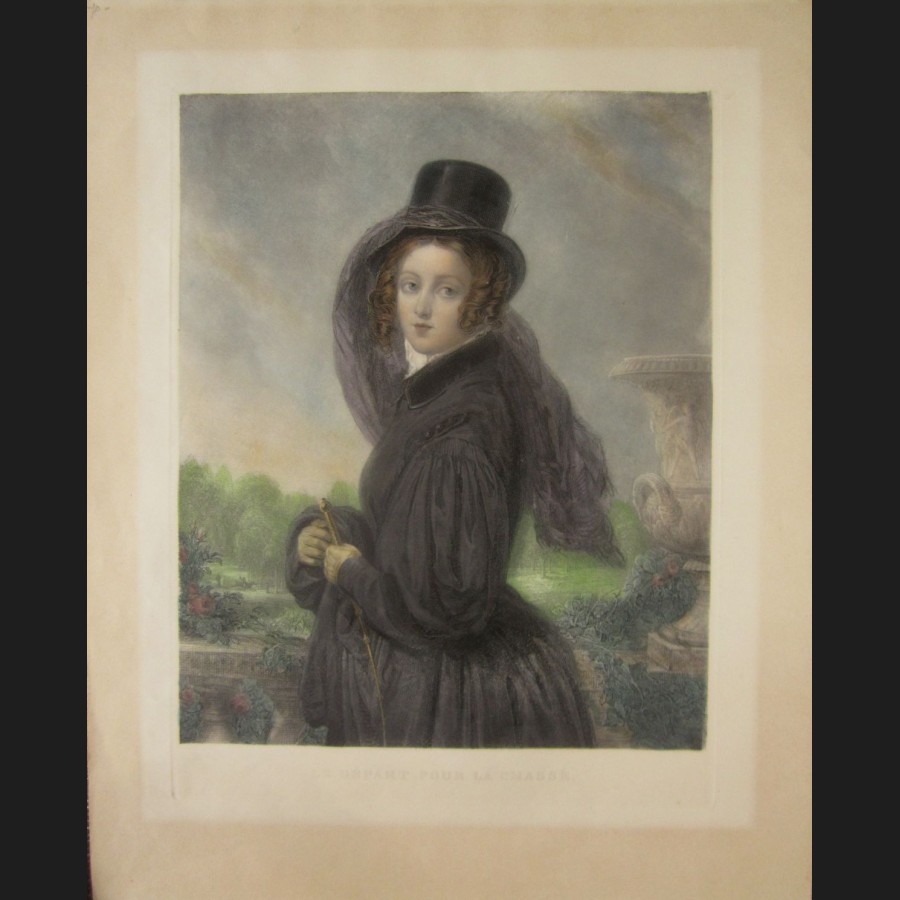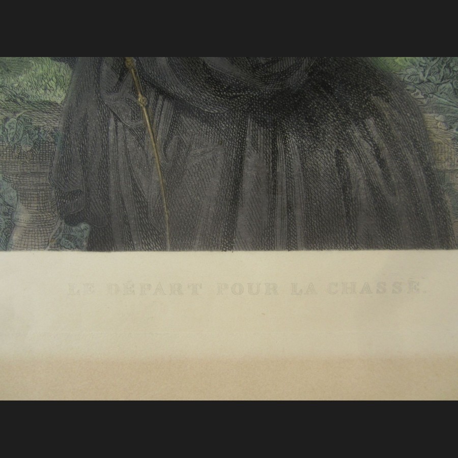 D'après Léon Lucien GOUPIL, Le Départ pour la chasse, gravure aquarellée